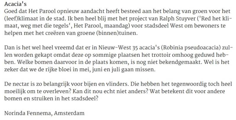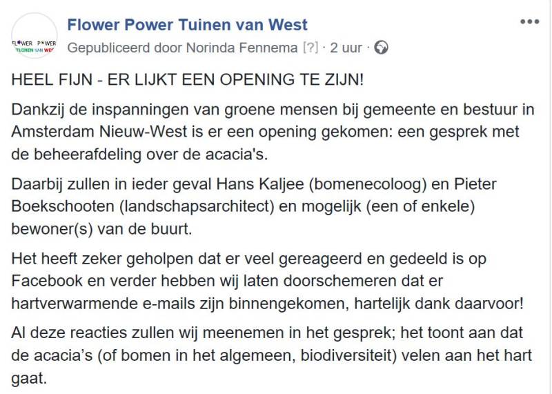 Er komt een gesprek over de acacia's: mogelijkheden en alternatieven!