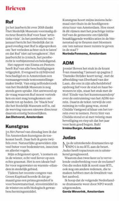 Ingezonden brief in Het Parool én een adhesiebetuiging: kunstgras hoort niet thuis in ecologische kwetsbare gebieden (daarbuiten ook niet)